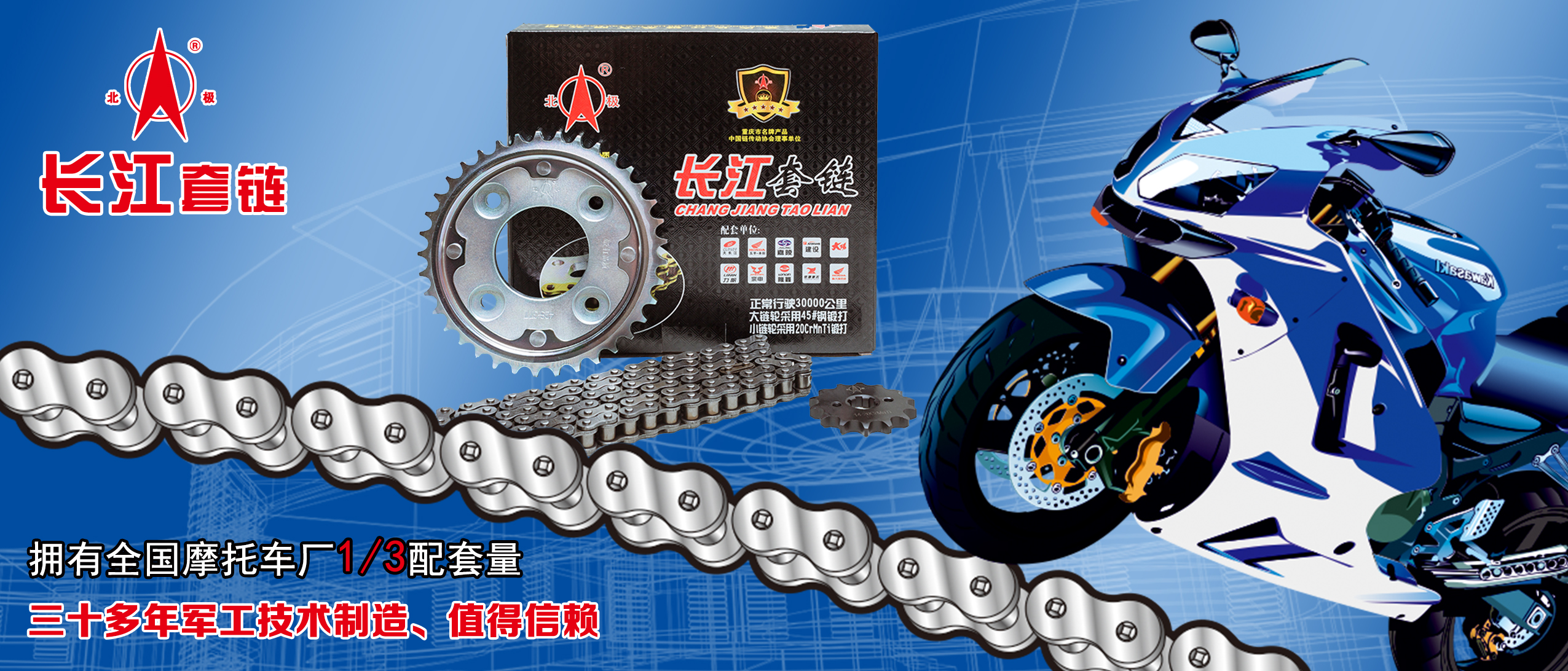 重慶開創北極摩托車有限公司負責出品與銷售重慶長江套鏈、KCBJ大鏈條、KCBJ小鏈條、KCBJ大鏈輪以及KCBJ小鏈輪。重慶長江鏈條有限公司,其前身是中國兵裝集團旗下大型國營軍工企業——重慶長江電工(集團)有限公司的下屬企業。后來,重慶中遠工業(集團)有限公司對該公司進行參股并取得控股地位。三十余年來,公司產品為國內眾多大型摩托車生產企業提供配套服務。因其具備質量穩定、規格齊全、同檔次產品價格親民等突出優勢,不僅獲得了國內外客戶的高度贊譽,滿足了他們對高品質且價格實惠產品的追求,更在國內外市場上始終保持暢銷態勢。 Chongqing Kaichuang Arctic Motorcycle Co., Ltd. is responsible for the production and sales of Chongqing Changjiang chain sets, KCBJ large chains, KCBJ small chains, KCBJ large sprockets, and KCBJ small sprockets. Chongqing Changjiang Chain Co., Ltd., formerly a subsidiary of the large state-owned military enterprise Chongqing Changjiang Electromechanical (Group) Co., Ltd. under the China Ordnance Equipment Group, later saw Chongqing Zhongyuan Industry (Group) Co., Ltd. t... [詳細介紹] |