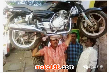 梅花香自苦寒來,上圖中這位同學(xué)經(jīng)過多年的修煉,終于可以用頭頂起摩托車了,這似乎是他畢業(yè)要回家前的考試,你猜猜下來他會做什么?在印度沒有人會用肩膀扛東西,基本上都是用頭頂?shù)模麄冋J(rèn)為頭跟脖子的力氣是最大的,印度人把牛當(dāng)做神靈,估計(jì)也都長了牛頸吧。