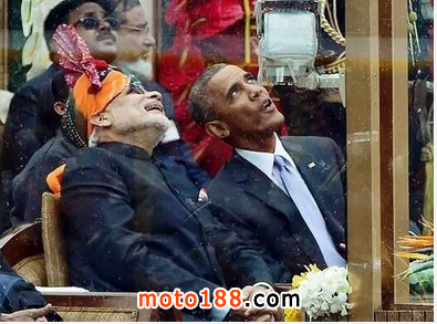 檢閱過程長約兩小時,印度觀眾通過被雨水打濕的電視畫面,看到奧巴馬與坐在身邊的莫迪頻繁交流。莫迪逐一向奧巴馬介紹游行隊伍中印度各邦的特色及花車的象征意義,當看到象征“印度制造”的齒輪雄獅花車駛來,青年學(xué)生表演集體舞時,奧巴馬微笑表示贊許。在看到摩托車隊特技表演時,他還豎起了大拇指。在《印度時報》事后歸納的本次共和國日檢閱10大亮點中,奧巴馬一邊嚼著口香糖一邊聽莫迪講解的一幕被歸入其中,認為這體現(xiàn)了美印兩國首腦的關(guān)系已達到“不拘小節(jié)”的地步。