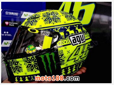 每頂羅西款AGV頭盔都有其自身寓意,當記者就此事問及羅西時,喜歡搞怪的羅西沒有作答,而是拿出了一頂與頭盔同款花色的毛線編織帽戴在了頭上,而后的回答更是讓在場的人“大跌眼鏡”。“這是圣誕節(jié)的圖案啊!雪花、麋鹿和樹!還有我的小龜!你們看不到嗎?我要佩戴它去找尋我的第十個賽季冠軍!”