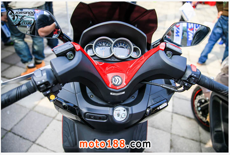 SYM的GTS 300小改款, 最明顯的變化是車(chē)頭的長(zhǎng)風(fēng)鏡改為短風(fēng)鏡了