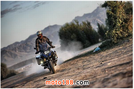當你帶上頭盔,耳邊傳來的其實只有渾厚而充滿力量的排氣聲浪以及各種等級的風聲,這些都將陪伴你完成所有的旅程,所以它顯得至關重要。但將其完全忽略并不是什么難事,因為有更多的誘惑力隨著車輪的腳步接踵而至。R1200GS ADV善于制造驚喜,同時又是慢熱型選手,我的意思并不是它難以控制(與之相反,除了坐高外,它具有很強的親和力,極易控制),而是有很多強大且極具實用的功能等著你在各種困難面前挖掘、利用。