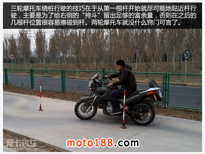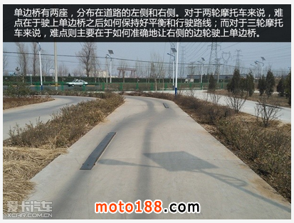 在摩托車的場地駕駛技能考試中,必考科目有四項(xiàng)(兩輪摩托車和三輪摩托車都是如此),繞樁行駛、單邊橋、坡路定點(diǎn)停車和起步,其余科目只是在行駛路線中會經(jīng)過,因此培訓(xùn)過程也重點(diǎn)是針對考試科目來進(jìn)行教學(xué)和訓(xùn)練。