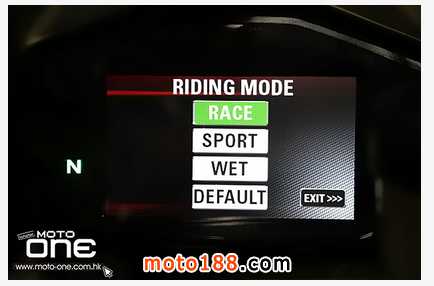 ●最強的RACE模式,意味著電子介入越少,車手靠更大個人技術控制205匹馬力輸出。