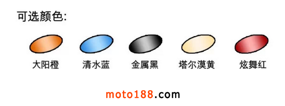 超大容積油箱,采用鍍鋅板BSUFD制造,防銹能力強;表面采用光固化烤漆工藝,烤漆面硬度提升2倍,色澤更加亮麗飽滿,不易留痕;全新設計彩條,動感十足;