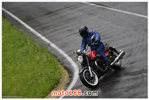 這次測試摩托車在超過30毫米的雨量下進行,路面為平坦的瀝青。埃爾多拉多-科摩湖畔的影像,雖然降雨但我們有一個很好的牽引力控制系統(MGCT),能夠我們輕松驅動這臺MOTO GUZZI ELDORADO。牽引力控制系統設置共有3級,最保守的駕駛選項,通俗說就是“雨”,“旅行”,“快”,盡管只是一個按鈕,從而改變并提供動力響應在加速方面。