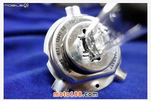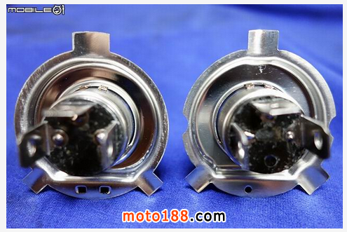 不過既然拿到 H17 燈泡,就順手與現(xiàn)任三陽常用大燈 HS1 進(jìn)行比較,左方為 HS1,右方為 H17,可以發(fā)現(xiàn)在大燈燈絲位置稍微有一點(diǎn)點(diǎn)不同,另外就是 H17 燈組的安裝防呆凸耳寬度比起 HS1 都有所增寬,燈泡左右邊的鐵片也有新的防呆凹槽,能讓 H17 安裝時(shí)更輕松能找到定位。