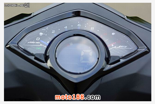 儀表板使用全新的多功能數(shù)碼式儀表板,轉(zhuǎn)速表位于上方,使用 LED 發(fā)光二極管設(shè)計(jì),下方則是多功能液晶顯示區(qū)域,可以顯示眾多資訊。