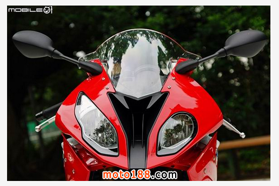S1000RR 的車頭使用全整流罩設計,因此能夠在高速時引導車身更趨穩定,整體整流罩也在大燈左右兩邊做引導穩流,不論是造型或者功能性都有所增添。