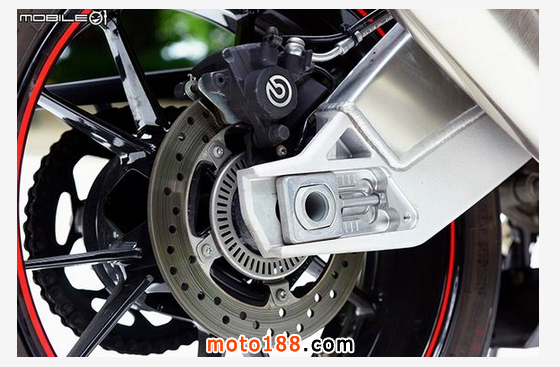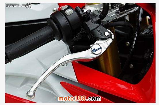 前輪煞車部分,采用 NISSIN 的煞車總泵,并且搭配桿離把距可調整的拉桿組,手感方面在賽道騎乘時的確讓人滿意,但市區騎乘時在操作上需要更細膩,才能讓騎乘舒適度提升。