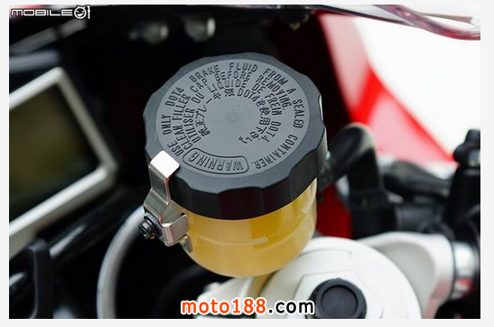 分離式油杯能夠更輕松的了解前輪煞車油使用狀態,畢竟這種速度機器以前輪煞車為重的情況下,若前輪煞車油沒有在應更換時進行處理,難保在高速時無法發揮煞車的正確效能。