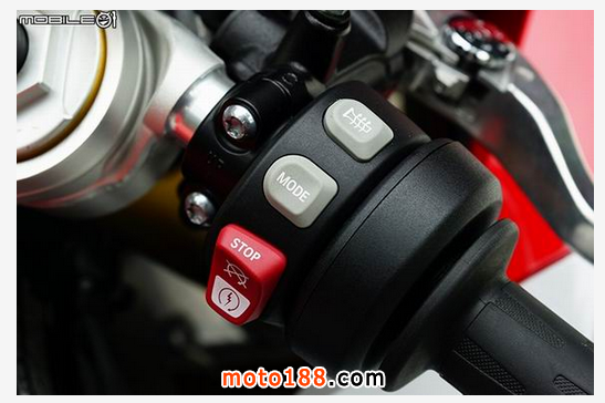 左把手開關組非常復雜,最前端為遠燈/近燈/超車燈開關,上端到下端一一介紹起,分別是定速控制系統開關及調整速度范圍撥鈕、警示燈開關、ABS 模式調整開關、儀表板功能切換及單圈時間閱覽按鈕、DTC 循跡系統介入幅度調整按鈕、方向燈開關以及喇叭按鈕,關于定速控制的啟用范圍為 30KM/h~210KM/h 內,調整范圍則是以撥鈕每按一次就調整 1KM/h 為主,其余功能將在后端再作解釋。