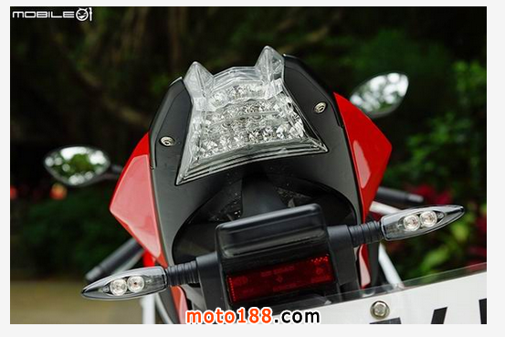 尾燈殼與上一代的 S1000RR 相同,也是采用這種線條非常尖銳的雙凸點尾燈組,內部燈泡為全 LED 發光二極管設計,方向燈也一并采用 LED 方向燈組。