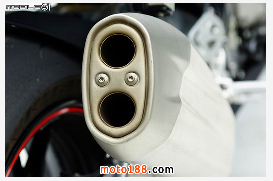 搖臂的右面,與左面也都采用相同幅度彎曲的搖臂組,另外可以看得到雙出口的排氣管頭段設計,原廠重新設計過的排氣管尾段,可以更有效增加低速時的扭力反應。