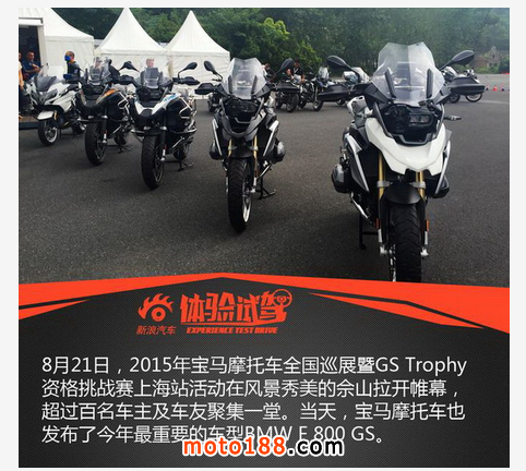 “生就非凡,縱擎人生”,8月21日,2015年寶馬摩托車全國(guó)巡展暨GS Trophy資格挑戰(zhàn)賽上海站活動(dòng)在風(fēng)景秀美的佘山拉開(kāi)帷幕,超過(guò)百名車主及車友聚集一堂,全情體驗(yàn)了寶馬摩托車帶來(lái)的純粹駕控樂(lè)趣。與此同時(shí),BMW F 800 GS也正式登陸中國(guó)市場(chǎng),并公布了12.64萬(wàn)元的建議零售價(jià)。