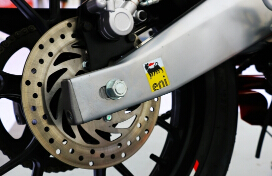 阿普利亞GPR制動(dòng)系統(tǒng)配置頗高,前制動(dòng)非常敏感(敏感得有點(diǎn)神經(jīng)質(zhì))再加上前減震偏軟的緣故,很容易產(chǎn)生“磕頭”現(xiàn)象,如果拋除減震原因的話,總體制動(dòng)表現(xiàn)是相當(dāng)不錯(cuò)的。