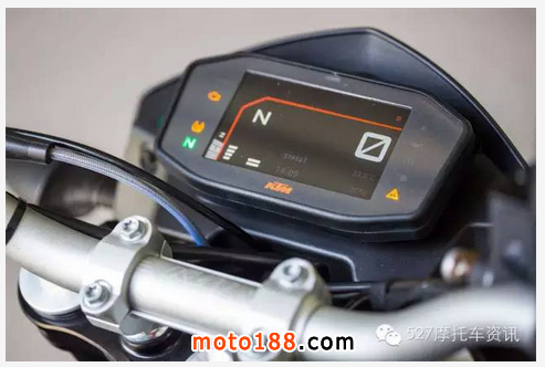 其次是配置升級,新款690 DUKE的動力模式更好調(diào)節(jié),老款車型要想調(diào)節(jié)動力模式需要卸下座墊才可操作,而2016款車型可以左側車把直接調(diào)節(jié),更加方便、實用;Bosch 9M+ ABS作為標配,牽引力控制系統(tǒng)為選配;拖曳距增加了4mm,提升了高速的穩(wěn)定性。另外,KTM首次為其車型配備了TFT液晶顯示屏。