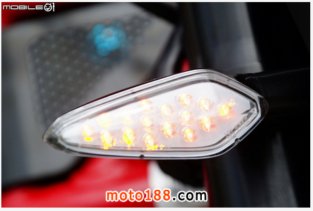 方向燈部分采用全 LED 方向燈設計,不論前后方向燈都是使用 LED 的方向燈總成,這組方向燈在以前也有一些國產檔車使用過,亮度與廣度及識別度都有很好的表現,而且面積也不大的情況下,能有這樣的表現實在可圈可點。