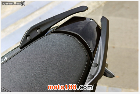后扶手采用目前許多車款采用較帥氣的分離式后扶手,而且螺絲孔還很貼心塞上橡膠墊防止積水,不過還是要再三提醒,后扶手不應用來將車輛"抬起"挪車使用,而是讓車主牽車時或者后座"扶住"后扶手使用,任何后扶手不論塑鋼或金屬材質硬扳挪車都有可能斷裂的。