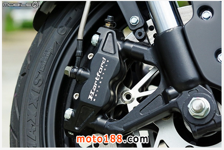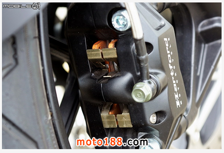 哈特佛這次在 Falcon 400 采用兩顆輻射固定式對向四活塞卡鉗,制動能力的確有到大車應有的水準,來令片采用雙插銷來令片,煞車來令片取得方面也不用太擔心,據了解為與知名改裝廠牌可以共享,所以不用太擔心耗材取得問題。