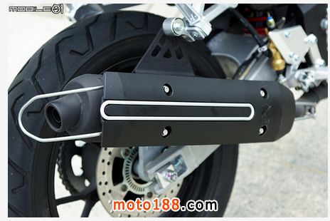 排氣管以及防燙蓋部分,因為國內機車排氣管均需有防燙裝置因素,所以在哈特佛的 Falcon 400 上也有防燙裝置,排氣管的聲音非常低沉,非常小聲,所以在臺灣的騎乘環境下應該還不會太吵。