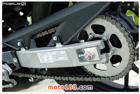 后齒盤為 520 規格,40 齒設計,因此要更換改裝鏈條的規格還算好找,后搖臂鏈條張緊調整也還算牢靠,在車輛代號方面是以 HB-400C 為稱。