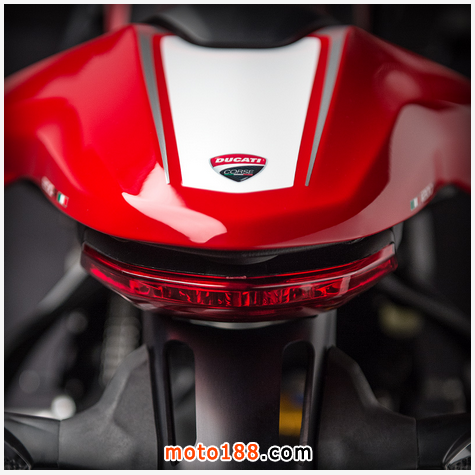 全新設計的車尾拜新副車架(乘托座位的部件)所賜,可縮短尾包圍及使之更纖巧,而輕量 化鍛造鋁合金輪框的造型與1299 PANIGALE相同,新車還採用更闊的200尾胎,S版採用190,相信是為了增加車輛在賽道上的咬地能力。還有更高級的前后ohlins避震,據資料 顯示有更長沖程,目的同樣是增加離地距。制動方面,與S版同樣配置了頂級的BREMBO M50煞車卡鉗及一對330mm煞車碟,尾制動是單245mm鉆孔碟配雙活塞煞車卡鉗,與1299 Panigale相同,而多段調校的循跡系統、馬力輸出及ABS等等應有盡有。