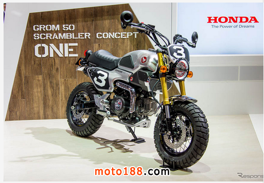 在28日開幕的“第44屆東京車展2015”上,本田披露了50cc概念摩托車“GROM50 Scrambler Concept-One ”和“GROM50 Scrambler Concept-Two”。