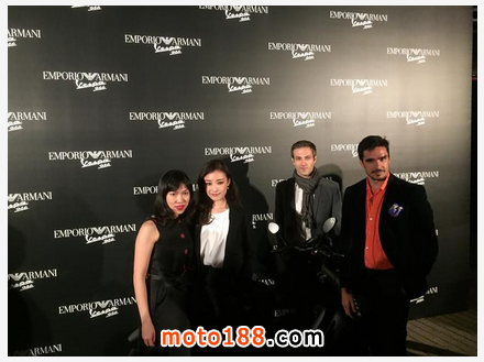 VESPA 946 Emporio Armani中國上市儀式在北京CBD華貿中心舉行,這里云集了全球很多大牌奢侈品店,而阿瑪尼(Armani)精品店在今晚則顯得格外奪目,因為另外一個來自意大利的豪華摩托車品牌VESPA也將現身于此。