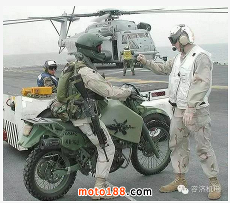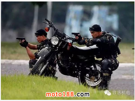 摩托車被譽為交通界的老化石,它作為交通工具進入人們生活領域已有100多年歷史,作為作戰工具使用也有半個多世紀了,說到軍用摩托車大家可能會想到嘉陵,首先聲明武警部隊的嘉陵600不屬于軍用之列,因為它在公路上還行若是泥濘的環境就要趴窩了,解放軍特種部隊裝備的摩托注意看油箱上特種部隊的標志。