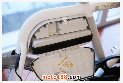 下面就是這輛車的核心技術(shù),電動(dòng)助力機(jī)上有一個(gè)電池組,由它為發(fā)電機(jī)供電。電池非常的小巧輕便,對(duì)于女孩子來講也可以非常輕松的拆卸。