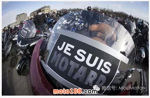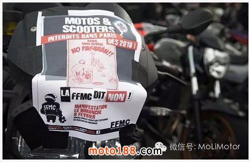 法國(guó)憤怒車(chē)手聯(lián)合會(huì)(FFMC)的海報(bào)上寫(xiě)著:“巴黎2016年禁止摩托車(chē),F(xiàn)FMC說(shuō)不!”