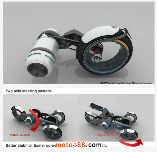 獨特的外觀是明確分類這一種新的摩托車。設計效果圖中透露出新的懸臂掛掛和轉向系統,凸出創新目標,而中間看出它是一臺電機。設計要素顯然非常流行,但并不顯得攻擊性強。復古的駕駛艙,類似二戰飛機,整合高端硬件,這也許未來的摩托車設計的一個新方向。