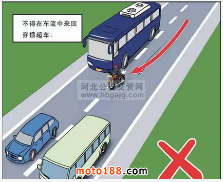 摩托車在道路上行駛應盡可能避開大型車輛。大型車輛因高度和長度的關系,會在車輛周邊產生一定的視覺盲區,一旦大型車輛突然變更車道或緊急剎車,極易引發交通事故。