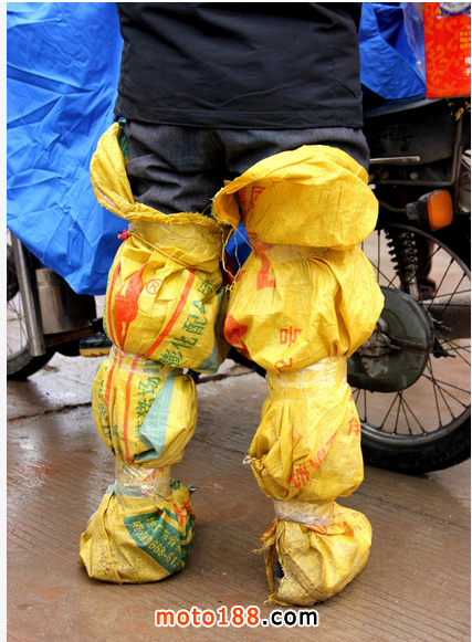 其中有人腿綁麻袋保暖防塵。
