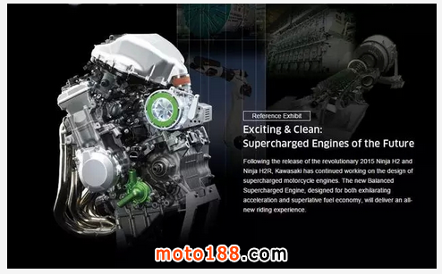 KAWASAKI在2013年日本東京車展展出機械增壓的并列四缸發(fā)動機后,使外界期待大作的面世。幸好,KAWASAKI并沒有讓車迷失望,在2014年9月30日正式發(fā)布配上機械增壓發(fā)動機的H2及H2R。在2015年的東京車展上,KAWASAKI展出一臺名為KAWASAKI Balanced Supercharged Engine Concept的概念發(fā)動機,驟眼看與H2及H2R的四缸發(fā)動機分別不大,細(xì)心看官方的簡短介紹影像才發(fā)現(xiàn)在機械增壓部位增加了類似搖臂的機件,作用是控制扇葉的開啟角度,即是說電腦根據(jù)車速及轉(zhuǎn)數(shù)等數(shù)據(jù),控制機械增壓的入風(fēng)量及流速,以達到KAWASAKI描述發(fā)揮發(fā)動機最大效率同時,也可做到省油,這功能與可變氣門有異曲同功之妙,可是廠方?jīng)]有公布新發(fā)動機的排氣量及細(xì)節(jié)。