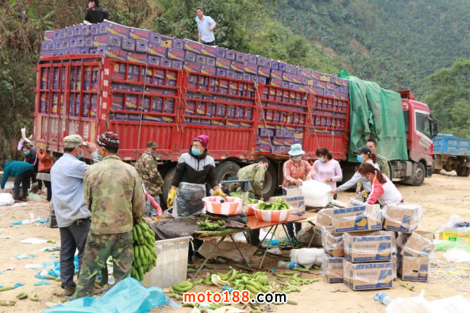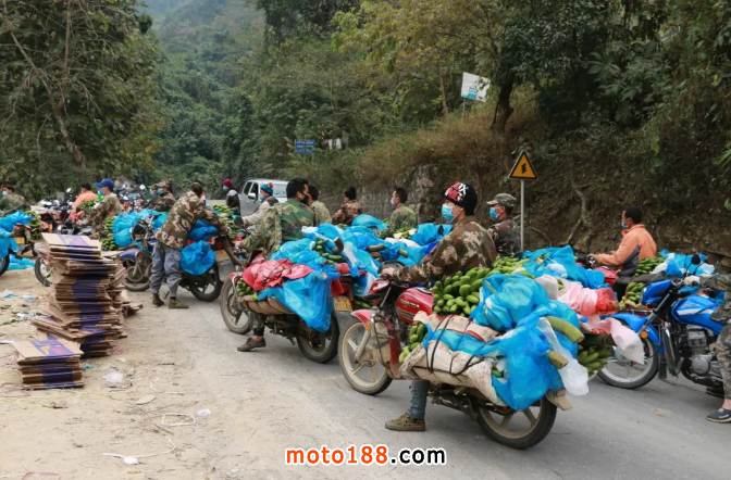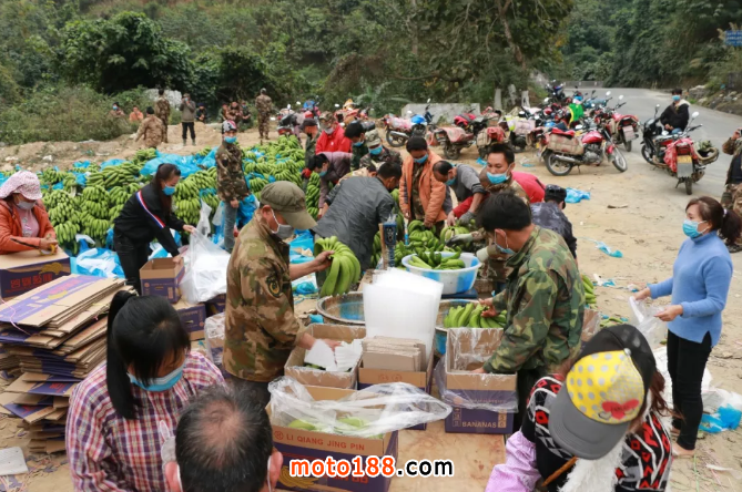 2月4日從捐贈物資的云南紅河州河口瑤族自治縣蓮花灘鄉石板寨村委會黨總支第一書記、駐村工作隊隊長胡濤處了解到,網上傳播的視頻,摩托車載運的物資正是該村坡頭小組的93戶村民捐贈的22噸香蕉。