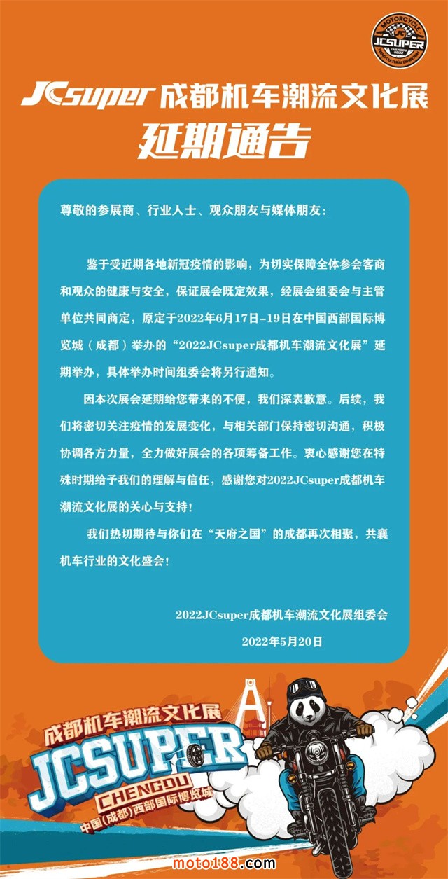 關于延期舉辦JCsuper成都機車潮流文化展的通知