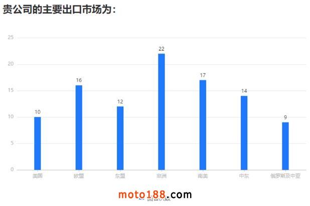 非洲、南美和歐盟成為企業(yè)主要出口市場(chǎng)(占比分別為:22%、17%、16%)。