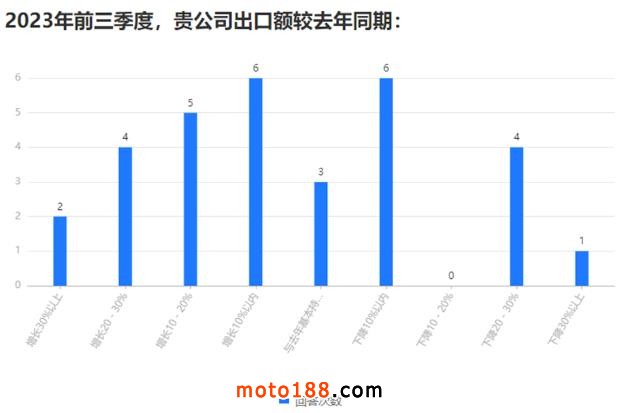 今年前三季度出口形勢(shì)較去年同期略有好轉(zhuǎn),多數(shù)企業(yè)出口額同比上漲(54.8%),或基本持平(9.7%)。