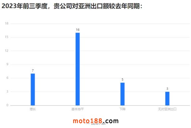 今年前三季度,半數(shù)企業(yè)( 51.6%)對(duì)亞洲出口與去年基本持平。