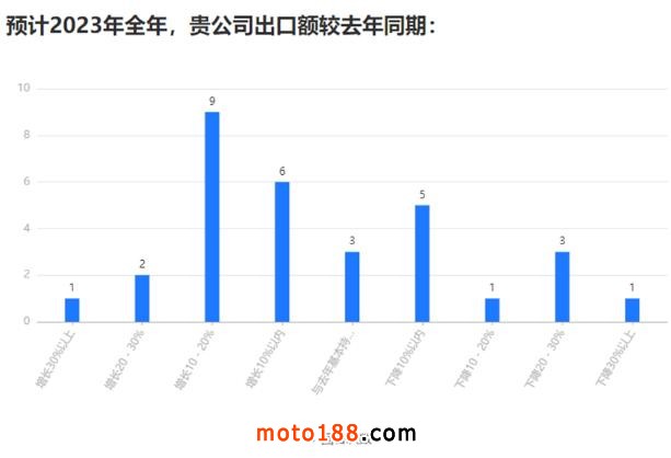 預(yù)計(jì)2023年全年,企業(yè)出口形勢(shì)較去年同期將有所好轉(zhuǎn),多數(shù)企業(yè)出口額與去年同期相比有所上漲(58.1%)或基本持平(9.7%)。