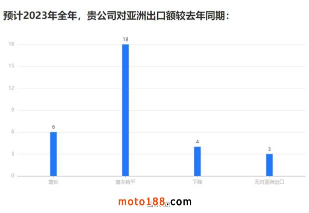 預(yù)計(jì) 2023 年全年, 部分企業(yè)( 58.1%)對(duì)亞洲出口與去年基本持平。