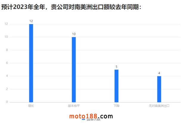 預(yù)計(jì)2023年全年,部分企業(yè)對(duì)南美洲出口與去年同期相比有所增長(zhǎng)(38.7%)或基本持平(32.3%)。