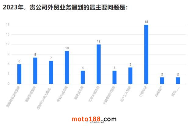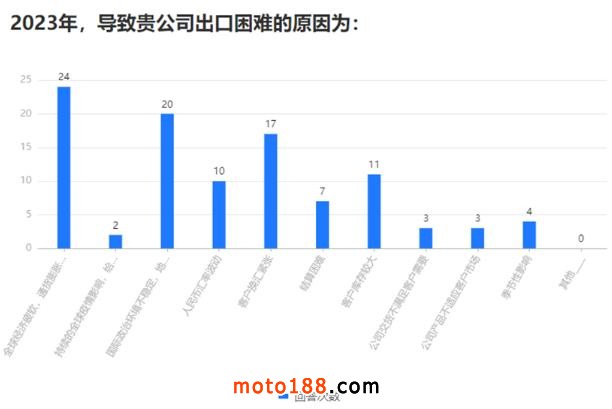 今年,導(dǎo)致企業(yè)出口的主要困難為:全球經(jīng)濟(jì)疲軟、通貨膨脹、購(gòu)買力下降(23.8%),國(guó)際政治環(huán)境不穩(wěn)定、地區(qū)沖突(19.8%)及客戶換匯緊張(16.8%)。