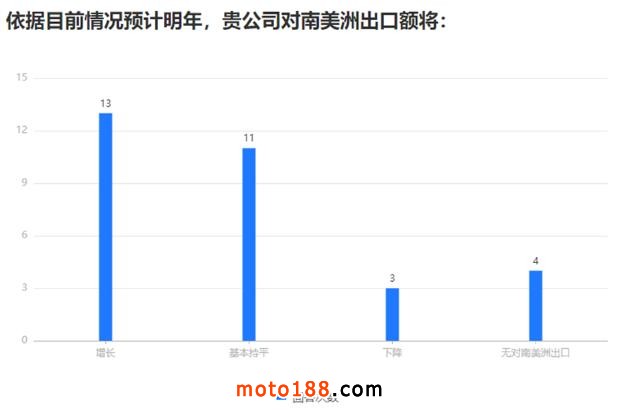 只有9.7%的企業(yè)預(yù)計(jì)明年對(duì)南美洲出口將有所下降。