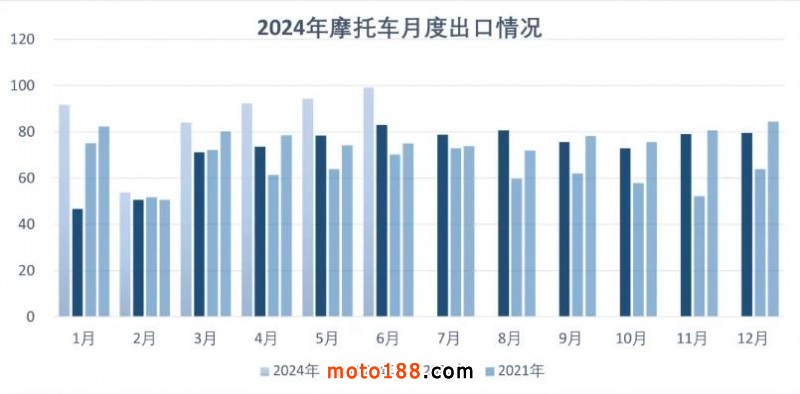 1-6月,摩托車生產(chǎn)企業(yè)產(chǎn)品出口總額41.82億美元,同比增長20.76%。整車出口量515.09萬輛,同比增長27.69%,出口金額33.1億美元,同比增長20.15%。摩托車發(fā)動機出口58.69萬臺,同比增長11.74%,出口金額1.27億美元,同比增長9.71%。沙灘車出口22.78萬輛,同比增長35.22%,出口金額5.58億美元,同比增長30.53%。摩托車零部件出口金額1.87億美元,同比增長13.37%。