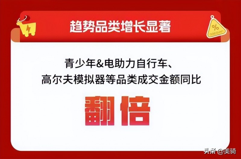 其中,青少年自行車和電助力自行車成交額同比去年購物節直接翻倍。結合部分2025年度行業調查問卷顯示,自行車運動接觸群體越來越年輕化,電助力自行車也逐漸普及。