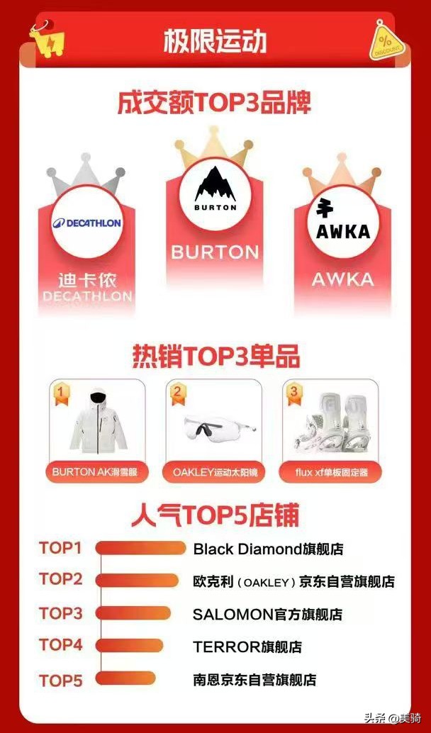 極限運動榜單中,在騎行眼鏡品類中占據主要地位的OAKLEY位居熱門店鋪第二名,尤其是熱銷產品第二的OAKLEY運動太陽鏡,購買的用戶騎行群體占比極大。