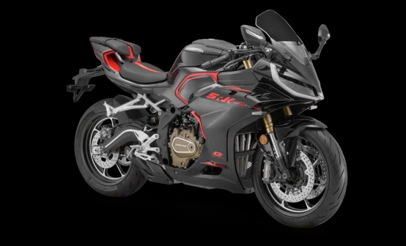 2026 年還推出了一款小型跑車 SRK 421 RR。令人驚訝的是,它也是一款四缸:421 cc 發(fā)動機,在 14,000 rpm 時產(chǎn)生 77.5 馬力。但這里的 QJ Motor 功率限制為 35 kW,售價僅為 5,990 法郎。它配備了可調(diào)節(jié)懸架、兩盤前制動器和 4 活塞徑向卡鉗、兩種騎行模式、牽引力控制(除了 ABS 之外)、TFT 屏幕和兩個 USB 充電插座。